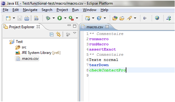 - Les mots clefs verts « macros » : checkContact, checkSecurity, …