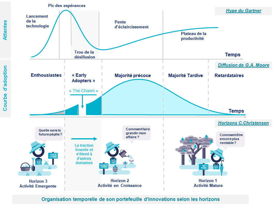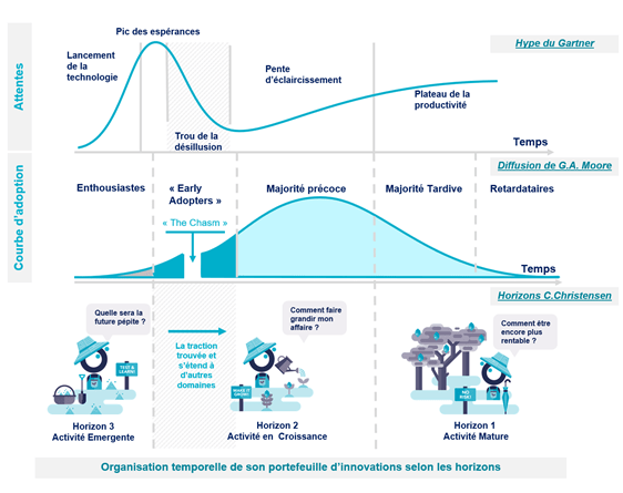 Accélérer vos innovations en mixant les bonnes pratiques de 3 modèles de diffusions de l'innovation (Gartner, G.A. Moore , C. Christensen)