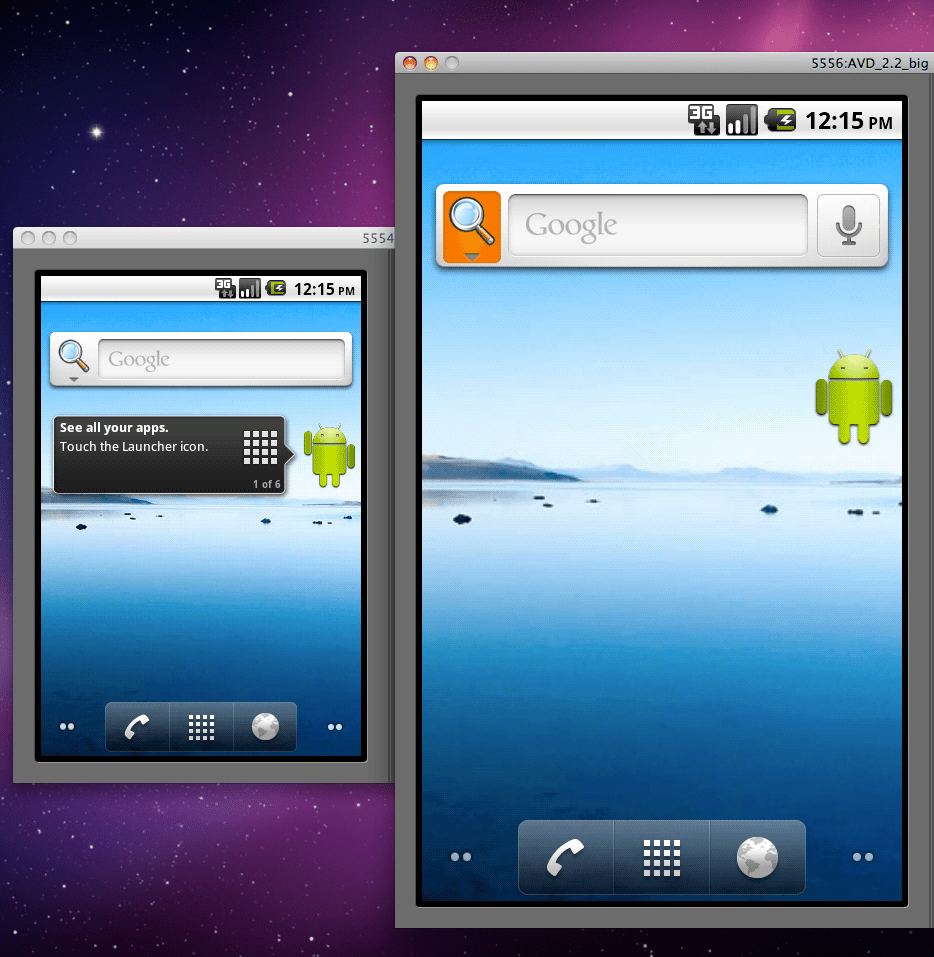 Nous avons vu que le parc Android était étendu et que les applications devaient s'y adapter. De nombreux tests sont donc indispensables. S'il est possible de tester son application sur l'émulateur offert avec le SDK, il est obligatoire de le faire également sur des smartphones réels ! Face à la multitude de marques, de versions de l'OS et des surcouches graphiques différentes, quelques téléphones de test peuvent s'avérer indispensables. Le HTC G2 (ou AVD2) et le Nexus One vendus sur le site du développeur Android peuvent ainsi être rejoints par un téléphone à grand écran utilisant la surcouche HTC Sense comme le HTC Desire HD. Pour adresser d'autres marques (Motorola, Samsung, Sony Ericsson,...) et modèles physiques (clavier, résolutions...), des solutions de tests professionnels comme DeviceAnywhere peuvent être envisagées.