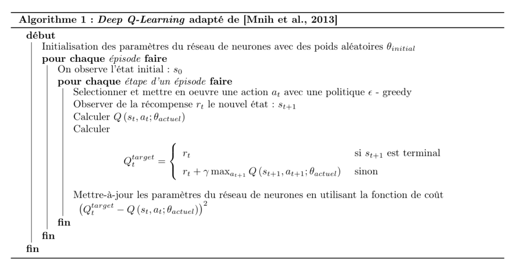 L’apprentissage de l’agent dans l’environnement est résumé sur la figure 2.
