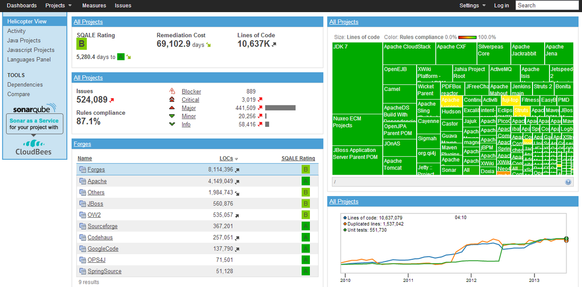 Rapport analyses SonarQube sur le nombre de lignes par projet