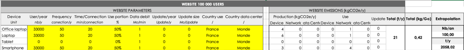 - 100 sites web de 100 000 utilisateurs en France => 2058,02 tCO2e