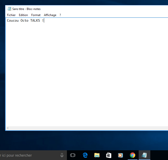 Pour continuer la démonstration, espionnons les entrées claviers de notre cible avec la commande “keyscan_start”, puis sur l’ordinateur de la victime ouvrons le bloc note pour écrire quelques mots :