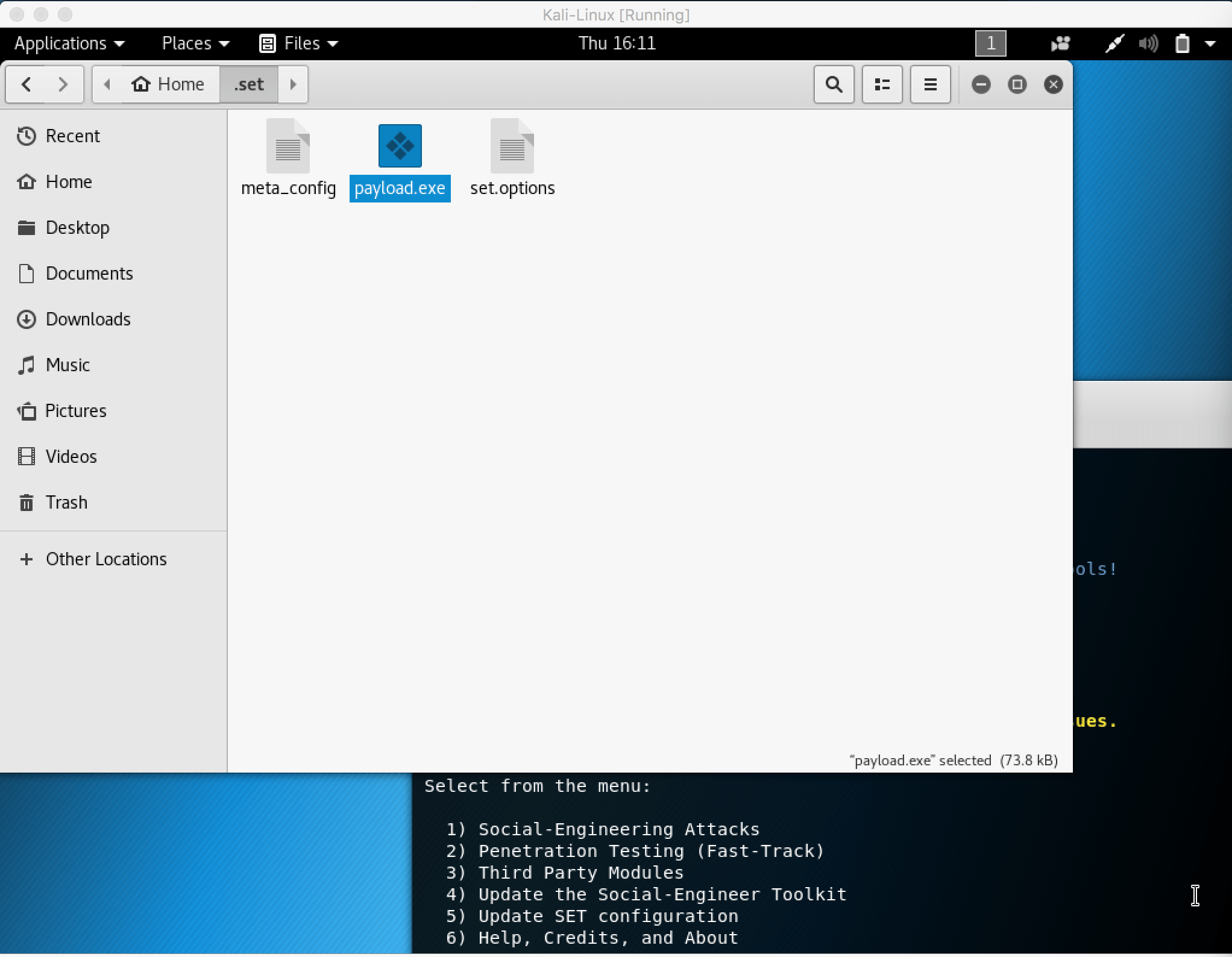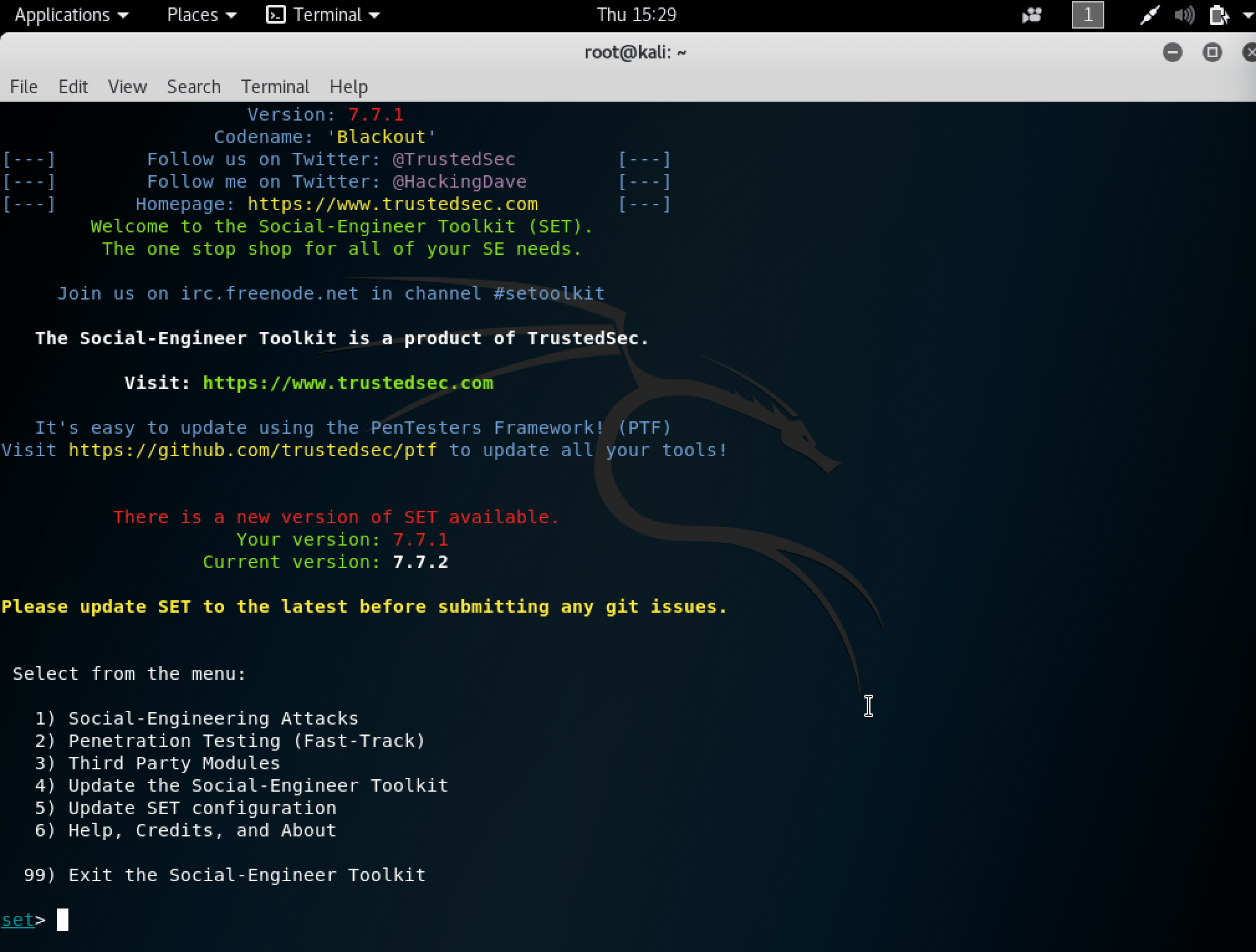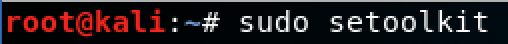 Ouvrons donc un terminal sur la machine de l’attaquant et exécutons seToolkit :