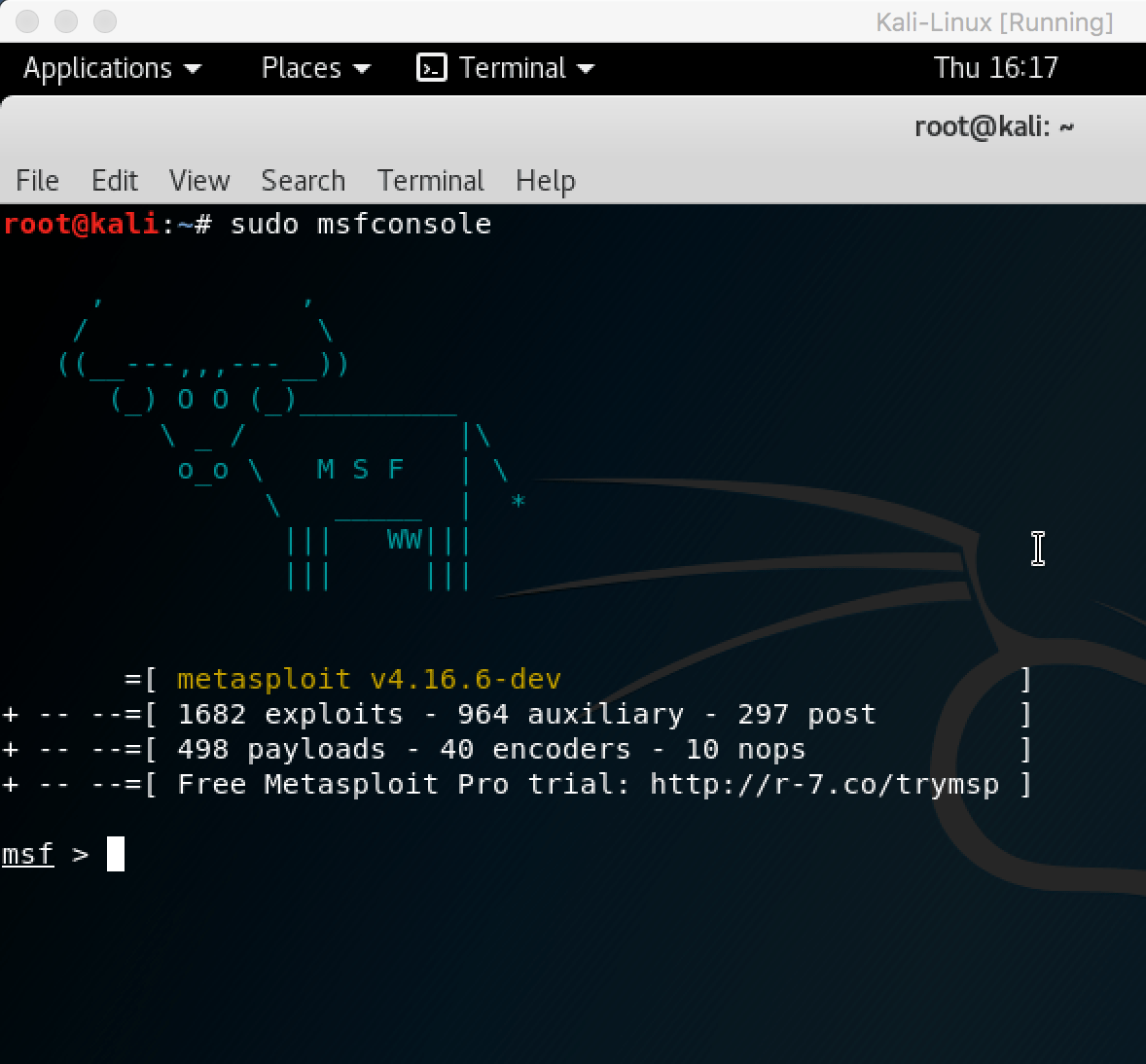Pour cela, je vais ouvrir un nouveau terminal et lancer la console du Framework Metasploit :