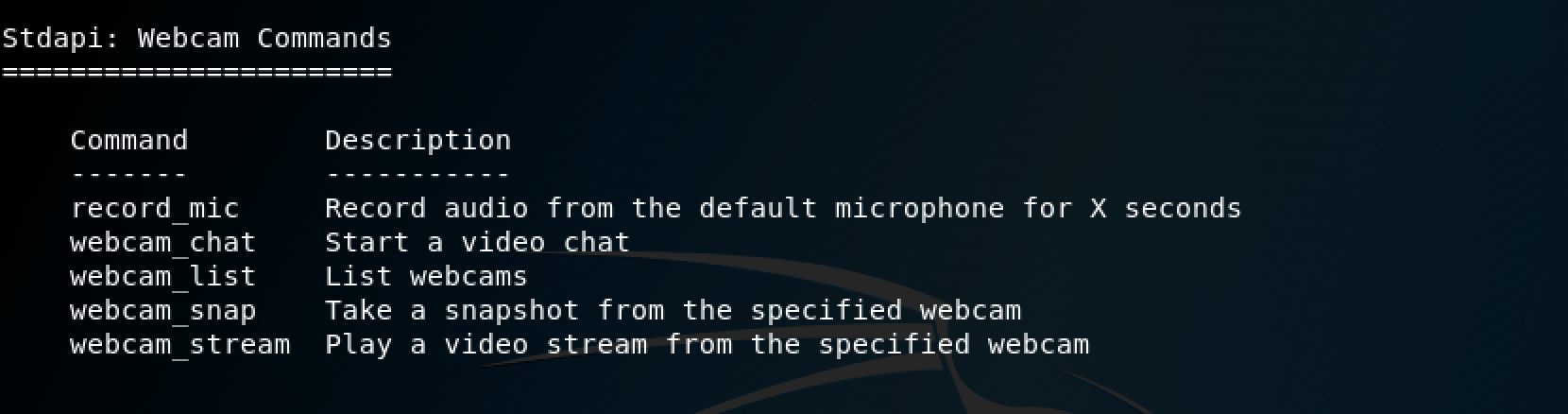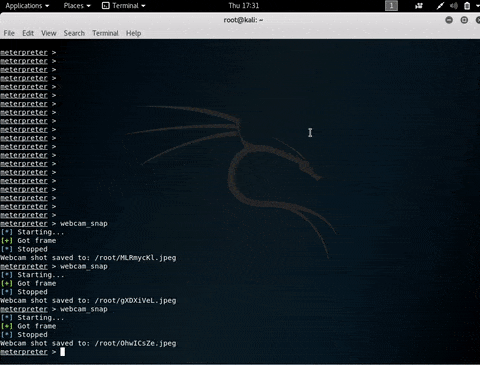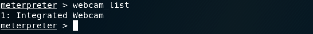 Le prompt nous informe que l’ordinateur cible possède une webcam intégrée (c’est un ordinateur portable).