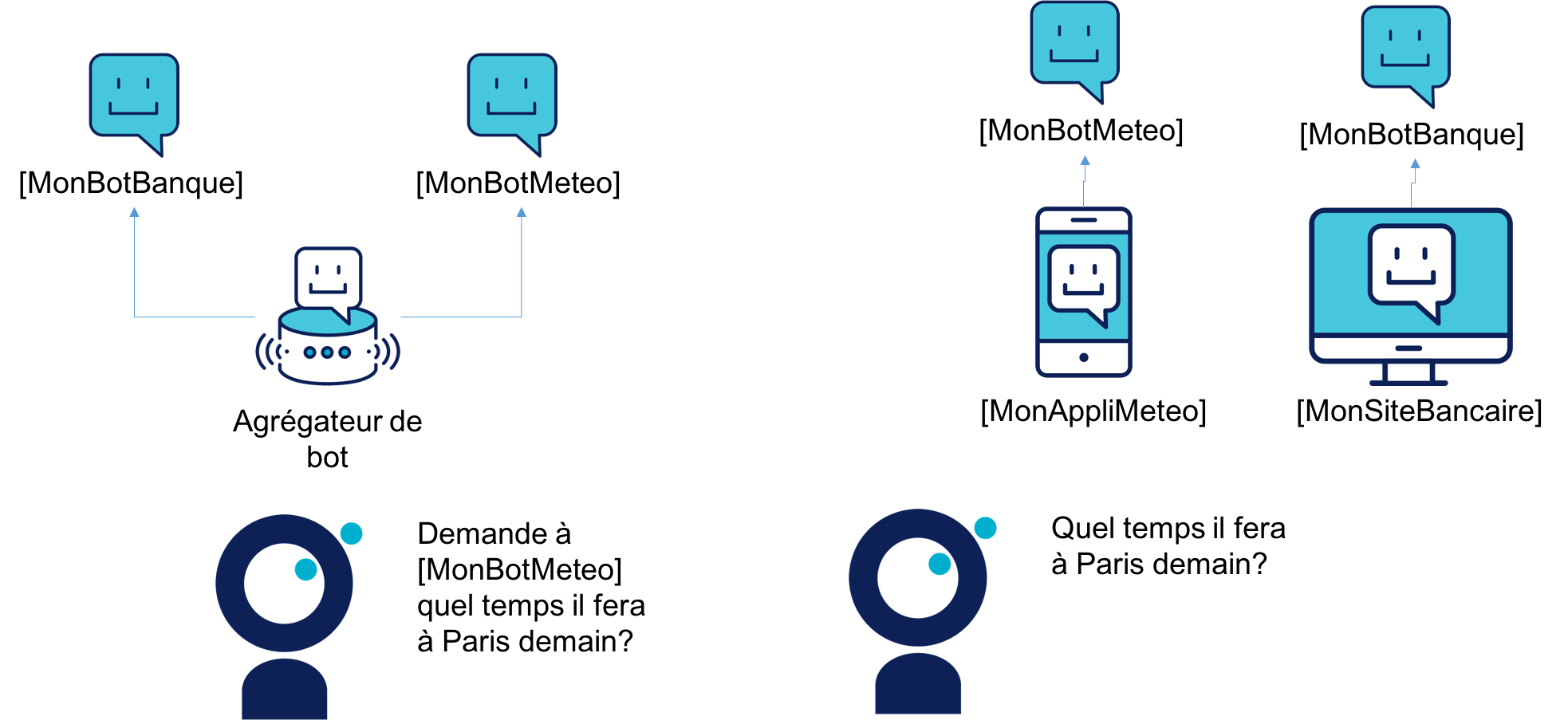 À noter, qu’il est tout de même possible de développer un chatbot vocal qui pourra être à la fois déployé sur un agrégateur de bot et dans une application propriétaire.