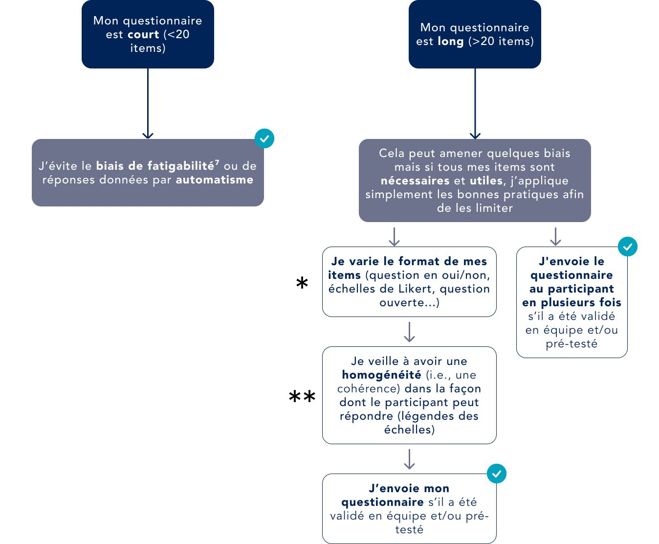 On cherche à diversifier pour stimuler le répondant MAIS homogénéiser pour faciliter la complétion. Autrement dit, on vise la cohérence.