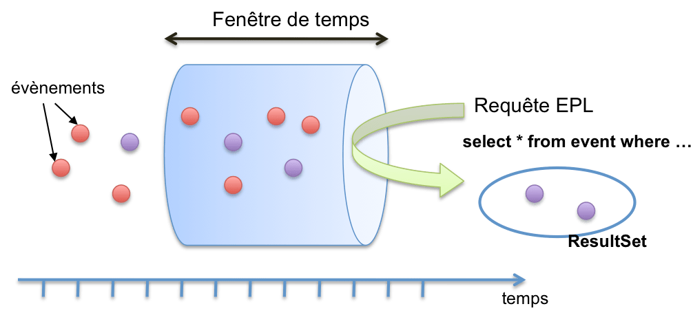 L’implémentation des règles de traitement des évènements se fait via un langage de requêtage, proche du SQL, appelé EPL (Event Processing Language), qui permet de requêter le contenu des évènements. En effet, plutôt que de requêter sur des données historiques comme dans une base de données classique, avec Esper, les données sur lesquelles nous allons effectuer nos requêtes est un ensemble d’évènements se produisant sur une période de temps donnée.