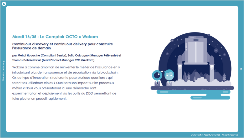 Le 16 mai 2023 s’est tenu un nouvel épisode des Comptoirs OCTO, suite à une réalisation d’OCTO Technology chez Wakam : continuous delivery et continuous discovery pour construire l’assurance de demain.