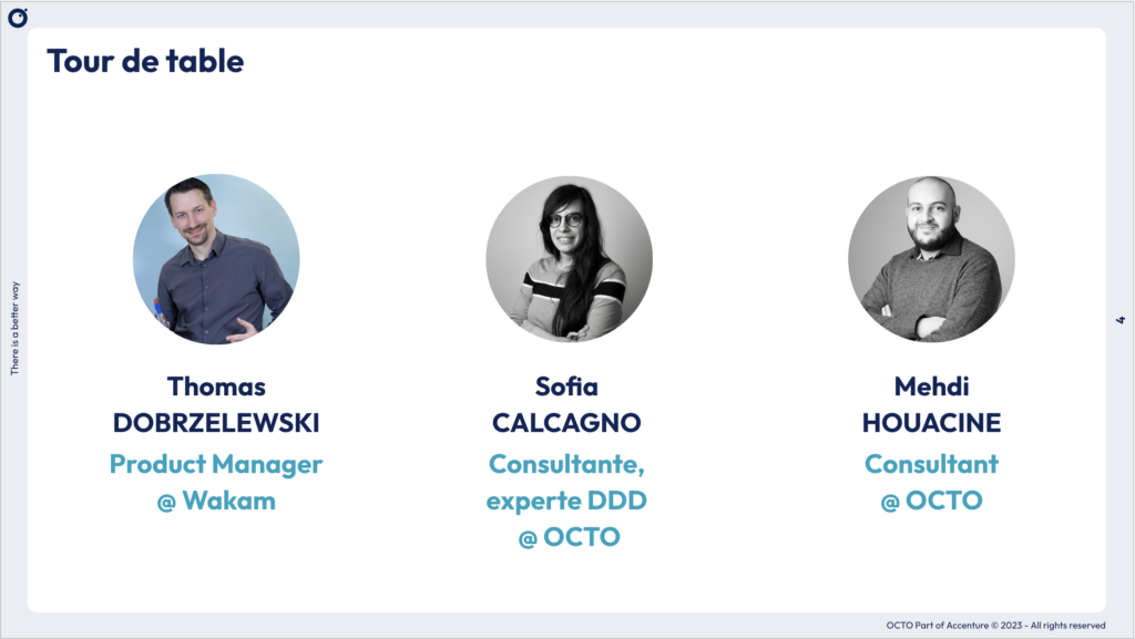 Ce compte-rendu fait écho au replay vidéo de ce comptoir, disponible ici, animé par Mehdi Houacine (consultant @ OCTO), Sofia Calcagno (consultante @ OCTO, experte DDD) et Thomas Dobrzelewski (Product Owner chez Wakam).