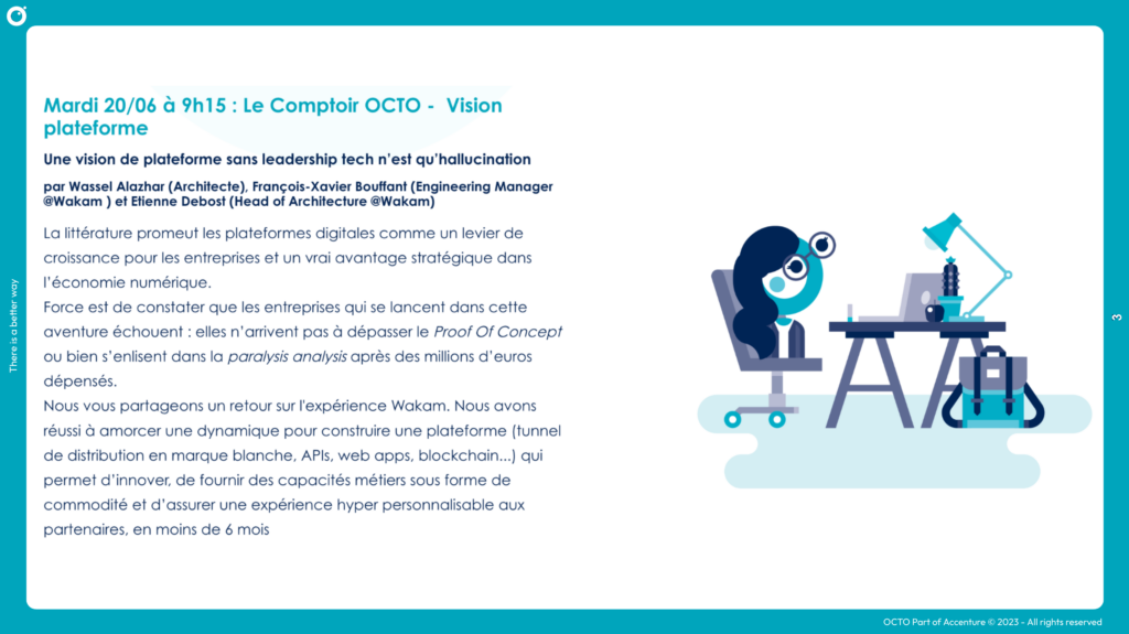 Le 20 juin 2023 s’est tenu un nouvel épisode des Comptoirs OCTO, suite à une réalisation d’OCTO Technology chez Wakam : Une vision de plateforme sans leadership tech n’est qu’hallucination.
