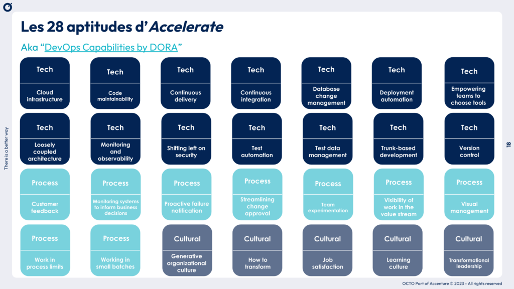 Accelerate : 28 aptitudes (techniques, de process et culturels) pour un delivery performant et des organisations qui atteignent leurs objectifs.