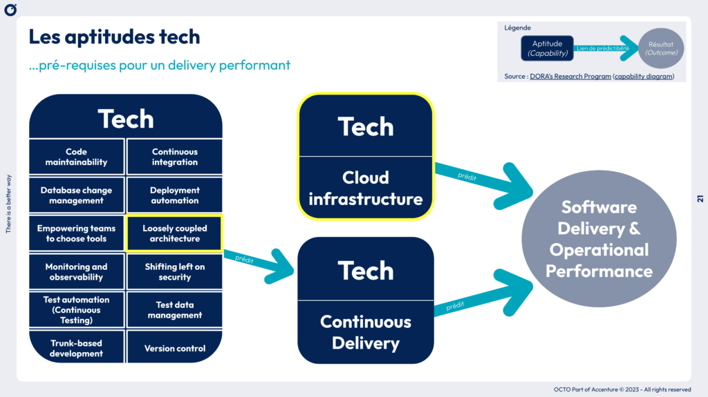 Le2 aptitudes techniques directement corrélées à la performance de delivery: “Cloud infrastructure” et “Continuous Delivery”.