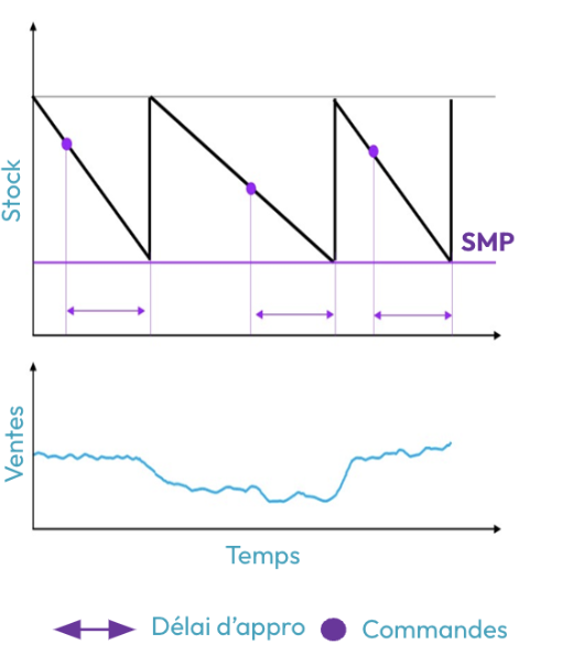 Le SMP est le niveau théorique la veille au soir du jour de réception des commandes de réapprovisionnement.