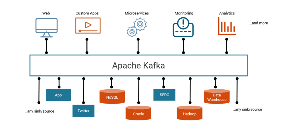 - The famous Kafka: a distributed and reliable message broker. Confluent platform has been built around Kafka by people previously working at LinkedIn.
