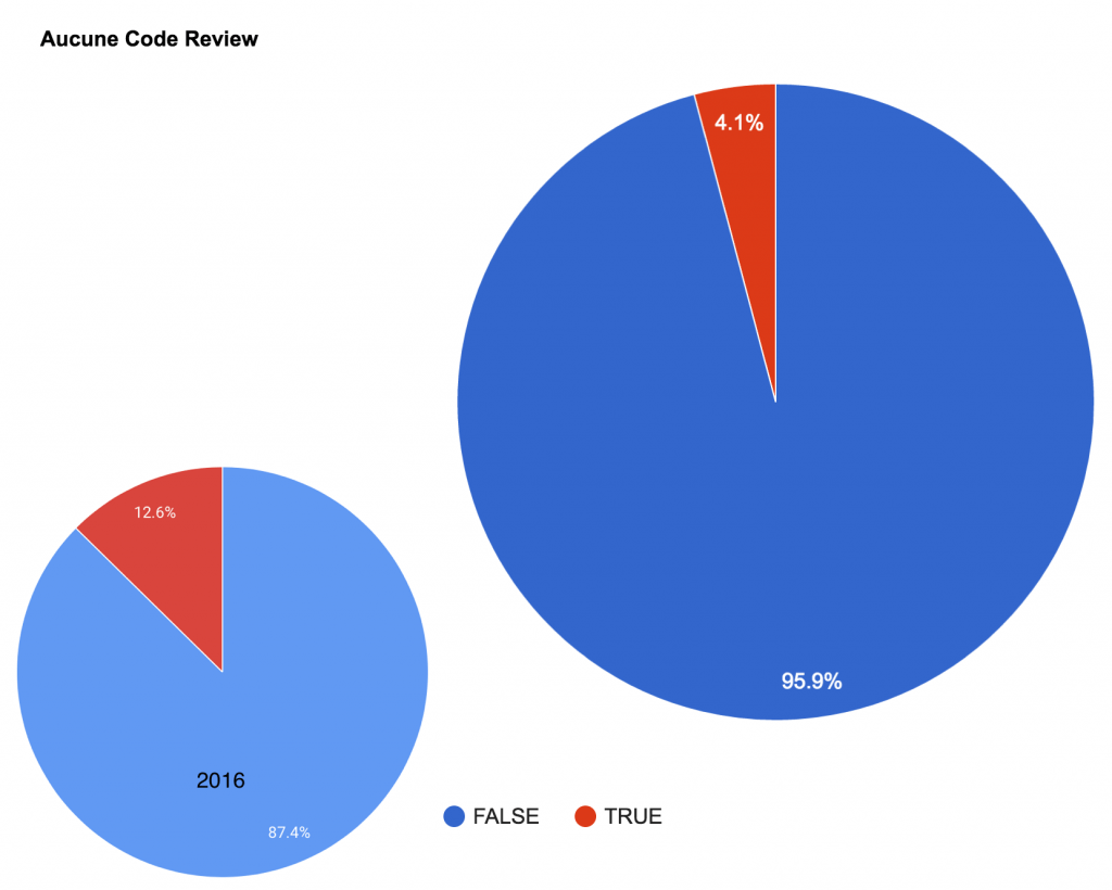 - seul 4,1% ne fait aucune revue de code (12,6% l'année dernière)