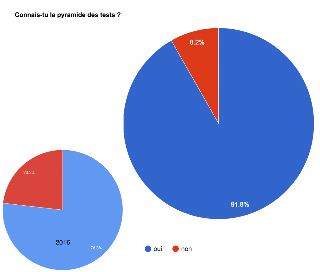 - La pyramide des tests est mieux connue des octos : 91,8% (76,8% en 2016)...