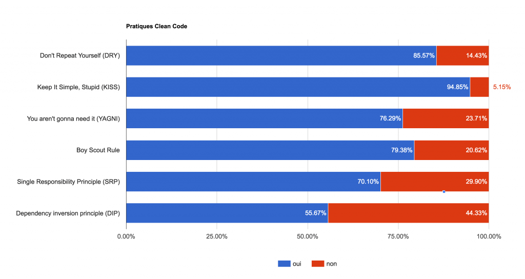 - 77,3% ont des standards de code sur leur projet (62,1% en 2016)