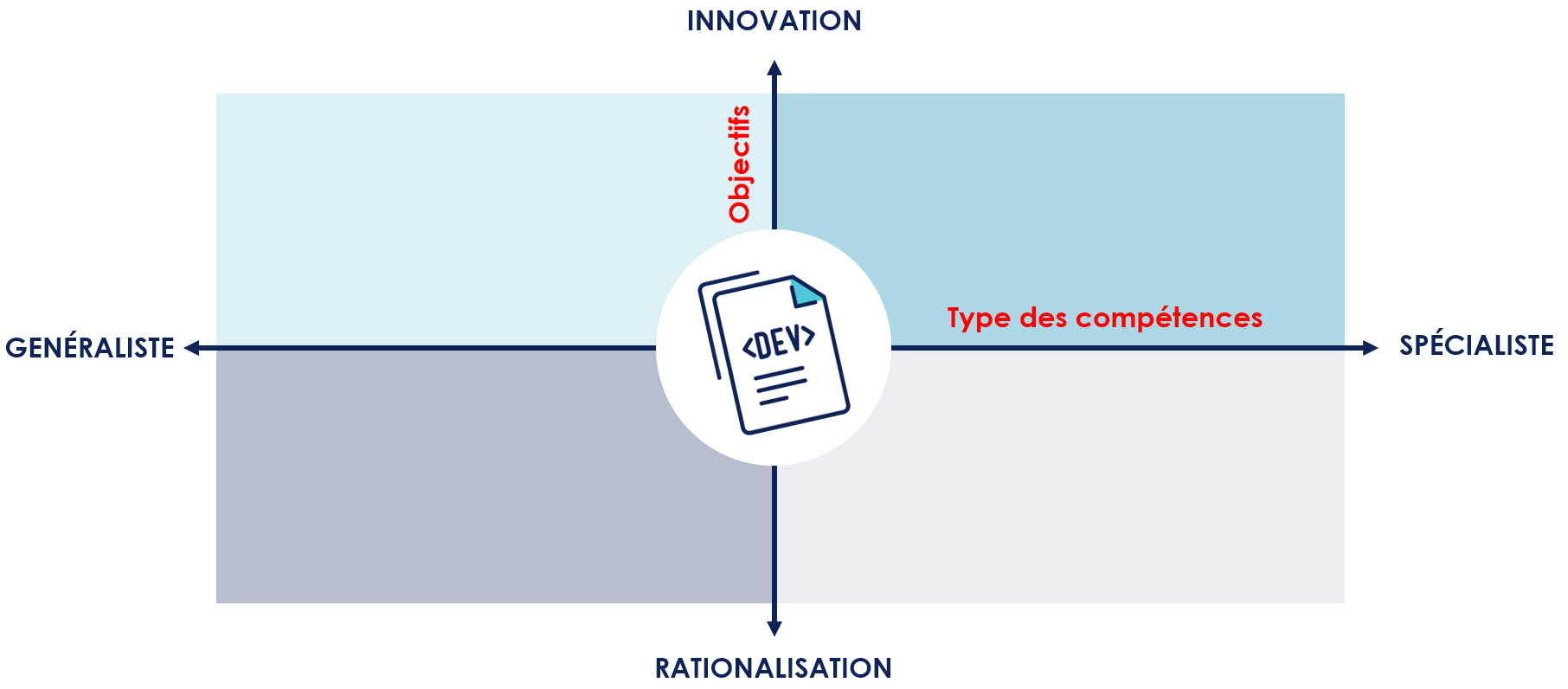 Dans le cadre d’analyse ci-dessus nous positionnons les compétences selon les objectifs du développement IT.