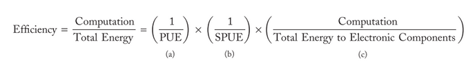 James Hamilton en parle dans ce papier mais le PUE mesure l’efficacité de l’utilisation de l’énergie électrique (en quelque sorte, cela mesure la perte d’énergie entre l’électricité qui rentre dans le datacenter (ce qui est facturé au final) et l’énergie qui arrive effectivement au niveau des serveurs).