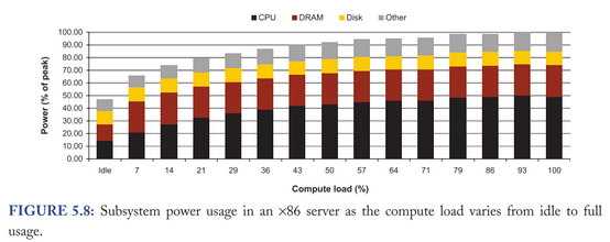 De façon plus proche, les prochains challenges autour de cette consommation énergétique touche au disque dur. Les CPUs ont beaucoup travaillé pour avoir une consommation proportionnelle à leur utilisation mais des composants comme la RAM ou le disque trés peu (page 59)