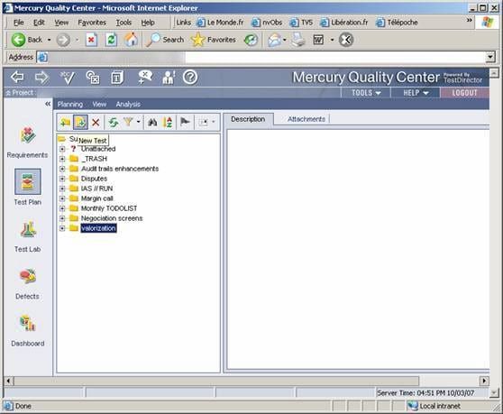 Pour cela, nous allons illustrer comment le résultat des tests d'une page "Compute Valuation" pourra apparaître dans TestDirector.