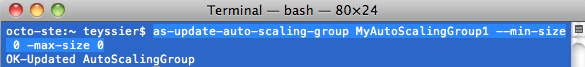 L'arrêt d'un groupe d'instances contrôlées par autoScaling, se fait de la manière suivante :