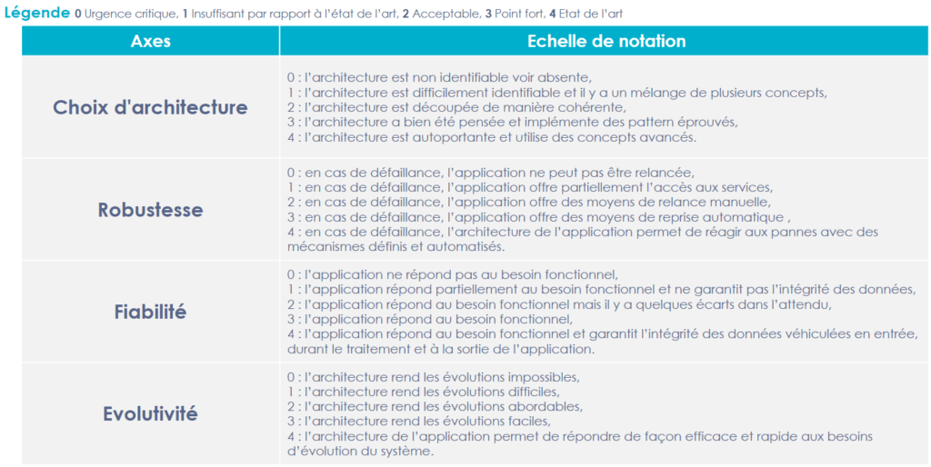 Extrait d’une grille d'analyse Octo de code logiciel - échelle de notation