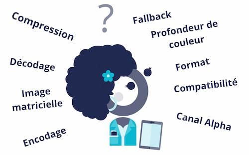 Lorsqu’on choisit une solution qu’on sait incompatible pour un certains nombres d’utilisateurs, on doit mettre en place une solution de repli, ce qu’on appelle un fallback. Dans un souci de performance, d’amélioration de l’expérience utilisateur, on peut vouloir utiliser des formats récents avec des meilleures performances d’encodage et/ou décodage. Mais cela ne doit pas se faire au détriment de l’information apportée à l’utilisateur.