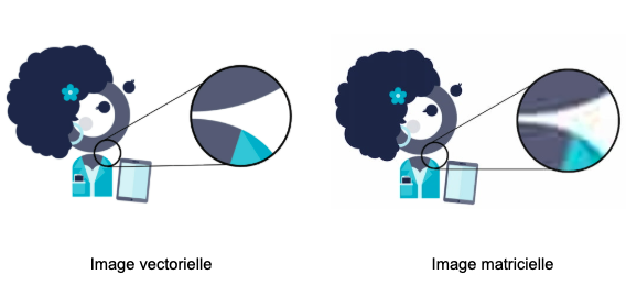 L’image vectorielle, quant à elle, est construite à partir de formes géométriques (vecteurs) comme des lignes, courbes, polygones. Elle est redimensionnable à l’infini sans perte de qualité. Taille légère et modifiable facilement. Même s’il est très rare d'utiliser des formats vectoriels, le plus utilisé de nos jours est certainement le SVG. Ce format est largement utilisé dans des domaines tels que la publication numérique, le design graphique, la cartographie ou encore la data visualisation. Ces secteurs nécessitent des images capables de conserver une excellente qualité, quel que soit le niveau de zoom ou la taille d’affichage. Grâce à sa nature vectorielle, un SVG reste parfaitement net aussi bien en miniature qu’en gros plan, sans perte de précision. C’est pourquoi ce format est régulièrement utilisé pour des logos et illustrations.