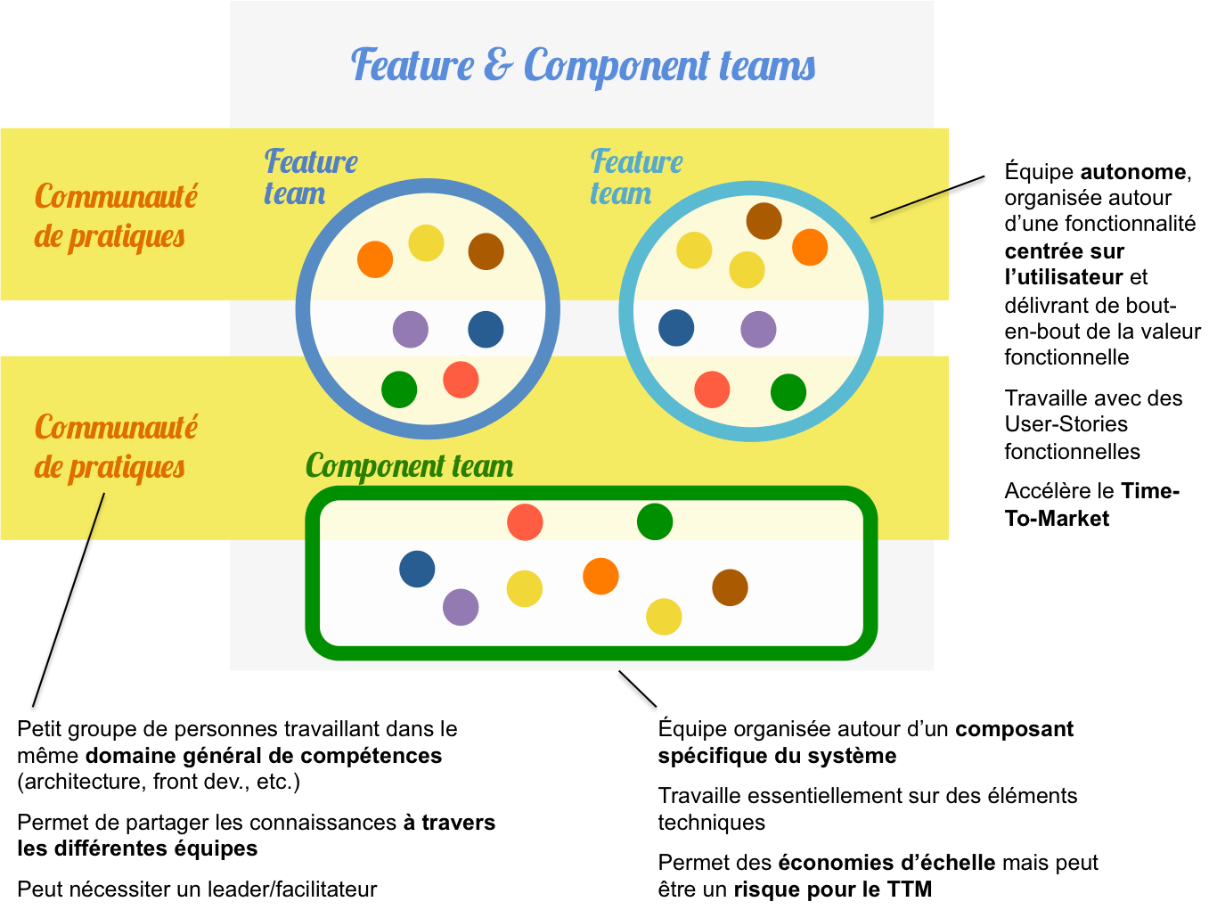 Dean Leffingwell (auteur du framework SAFe) présente ici cette différence entre Feature et Component teams :