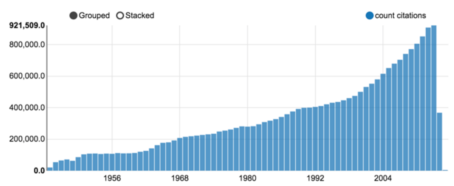 Em outubro de 2015, mais de 23 milhões de citações foram baixadas. Embora algumas publicações do fim do século 21 foram registadas, o volume aumentou drasticamente após a Segunda Guerra Mundial, tal como mostrado na figura 3.