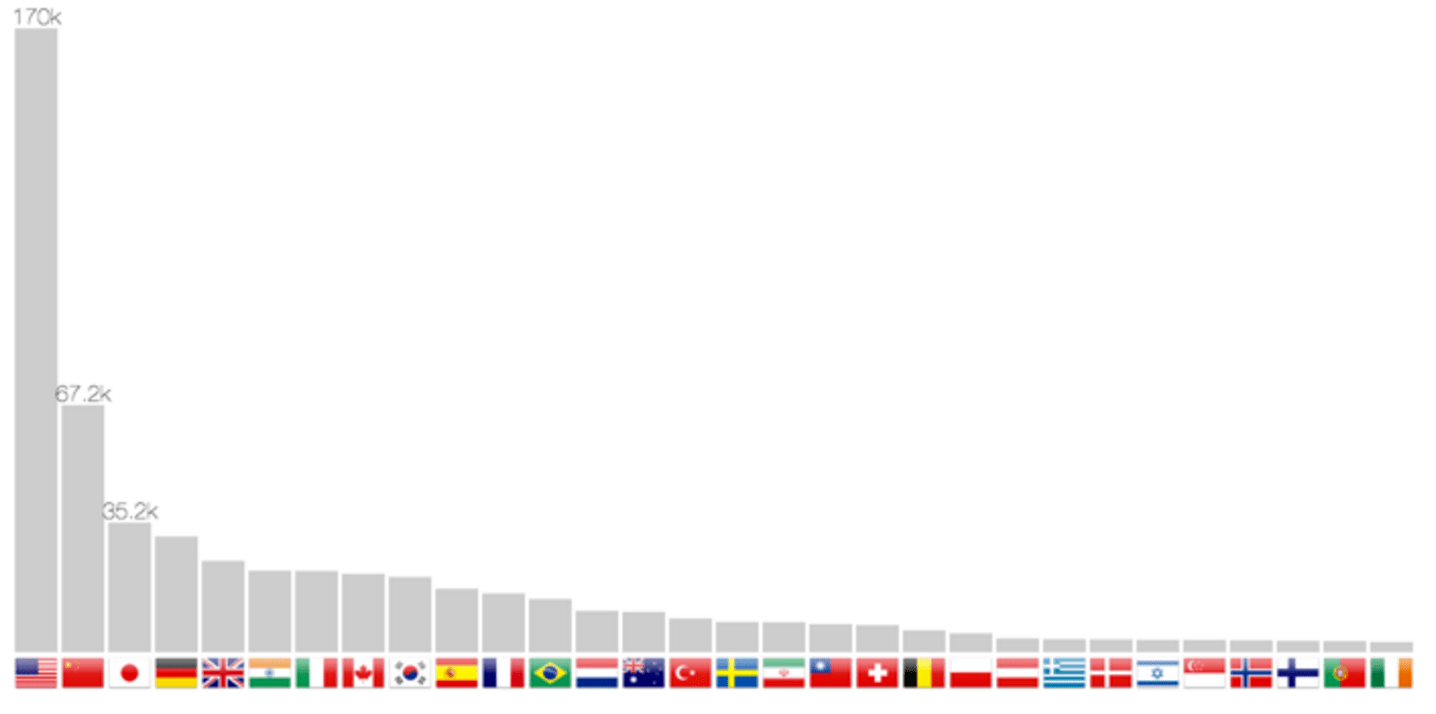 Contagem de publicação por país