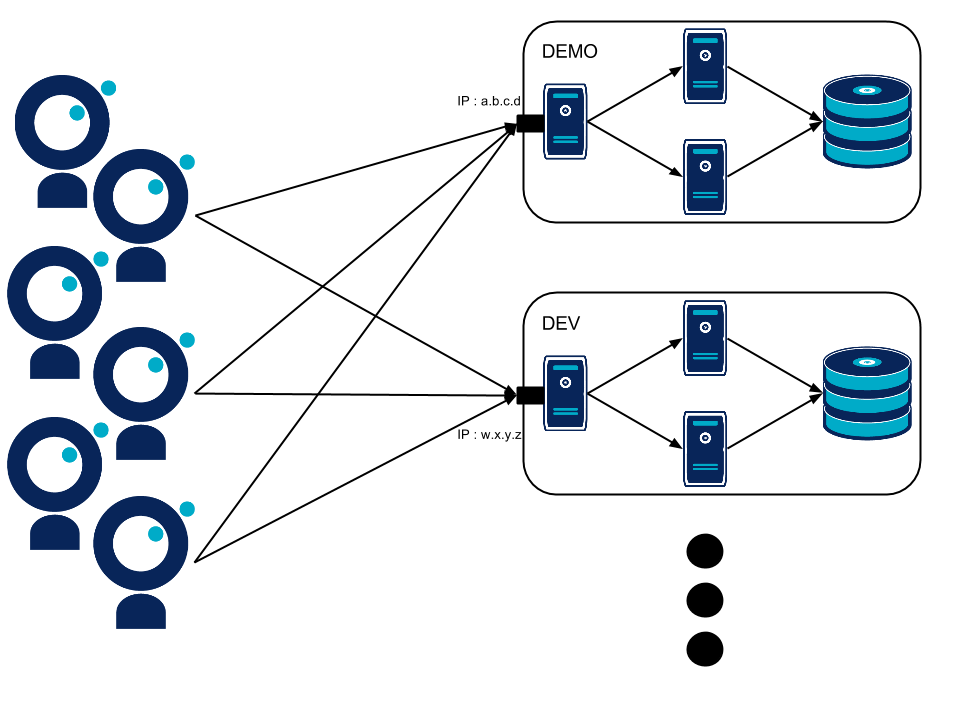 Pour cela la première solution est de simplement accéder aux points d'entrée des différents environnements par leur IP.