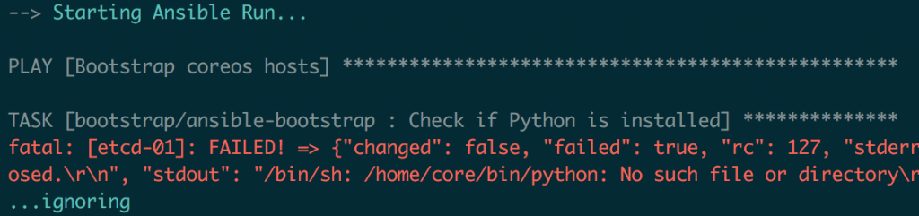 - Install Python “The CoreOS way”. The PyPy installation works, but it feels kinda hacky. I’d have loved to run Python from inside a container and provision the host with Ansible somehow