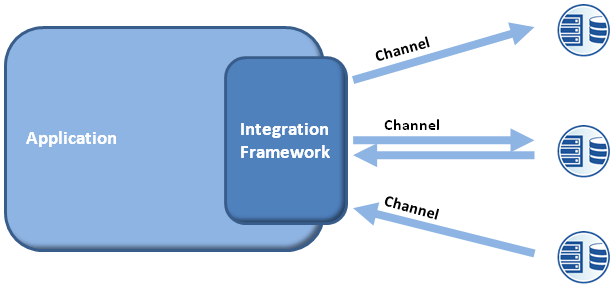 Once embedded in an application it takes the role of an Emissary_._ Such solutions are particularly powerfull to equip a Nova (a business domain central application) with mechanisms such as Messaging Gateway and Service Activator. The integration framework then acts as the integration module of a software package. This is typically the positioning of Spring Integration.