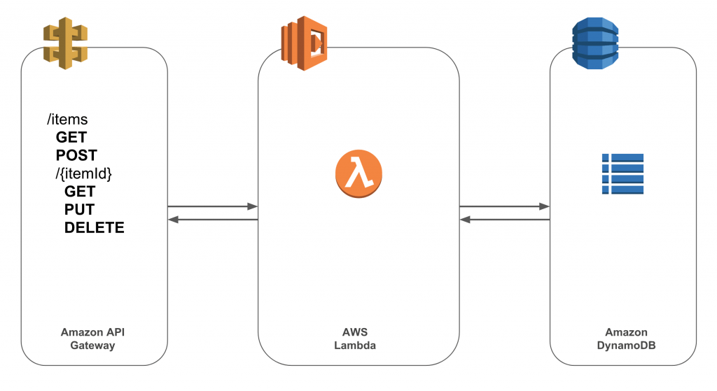 Avant de rentrer dans les détails de l’implémentation, voici une petite présentation des outils et technologies utilisés pour cette démonstration. D’une part, il y a l’application web qui est codée en java 8 à l’aide du framework Spring, plus précisément la version 5 avec Springboot. Cette application est un simple CRUD sur une base de donnée. D’autre part, il y a le service managé pour exposer l’API de l’application qui est basé sur AWS API Gateway. Et enfin, il y a le service managé pour la base de données qui est basé sur AWS DynamoDB. Tous ces services sont fournis par AWS ce qui facilite grandement la configuration de la stack. Néanmoins, il est possible d’utiliser d’autres services managés (par exemple Kong coté exposition de l’API) ou encore d’exposer une API “maison”, mais cela nécessite plus de configuration.