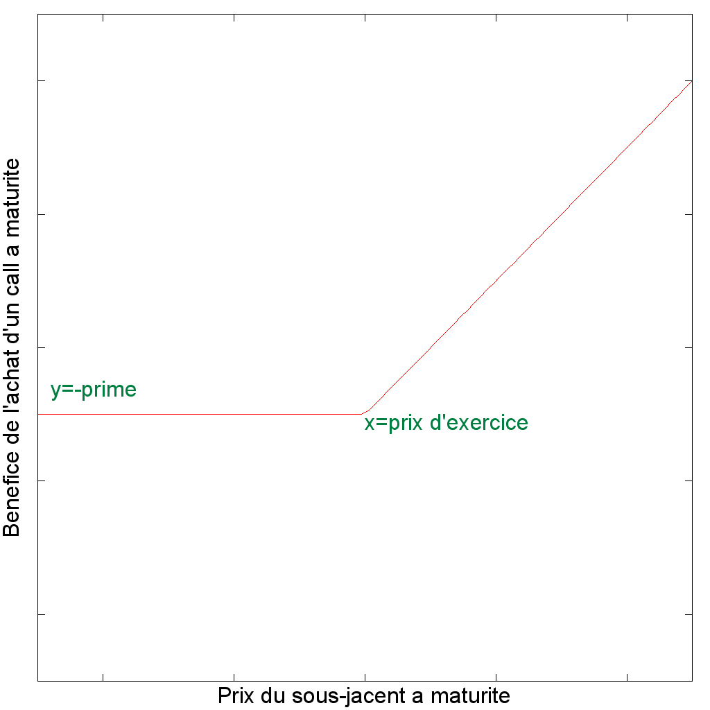 Pour les besoins de cet article, j'ai choisi un portefeuille extrêmement simple avec un unique produit : dans le jargon une position longue sur un call (c'est-à-dire que le propriétaire du portefeuille a acheté un call). Un call est une option d'achat, c'est-à-dire un contrat financier donnant la possibilité mais pas l'obligation au détenteur d'acheter une certaine quantité d'un instrument financier (le sous-jacent) à une date donnée (la date de maturité) et à un prix fixé (le prix d'exercice). Le vendeur reçoit en échange de ce contrat des honoraires (la prime).