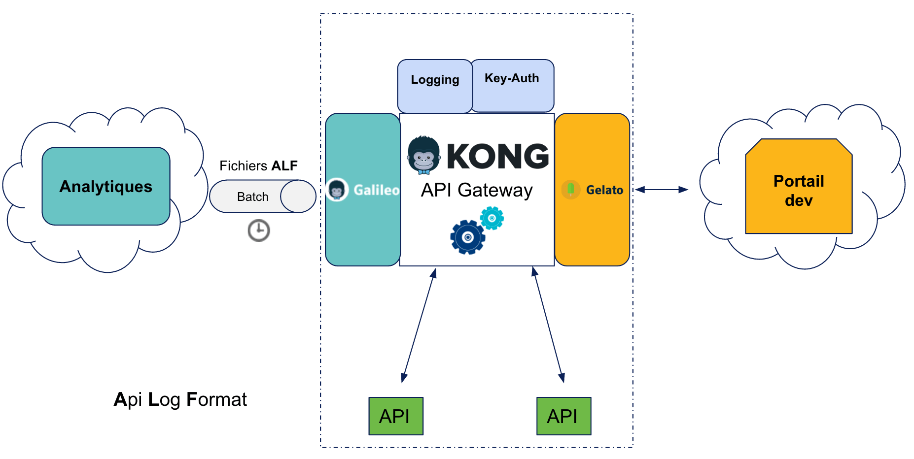 A partir de cette section, nous ferons référence aux 3 éléments composant la brique API Management (Kong, Gelato, Galileo) sous l'acronyme KGG.