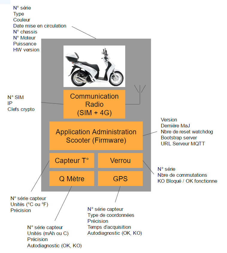 - la mise en circulation et la maintenance du scooter (administration de l’objet connecté “scooter”)