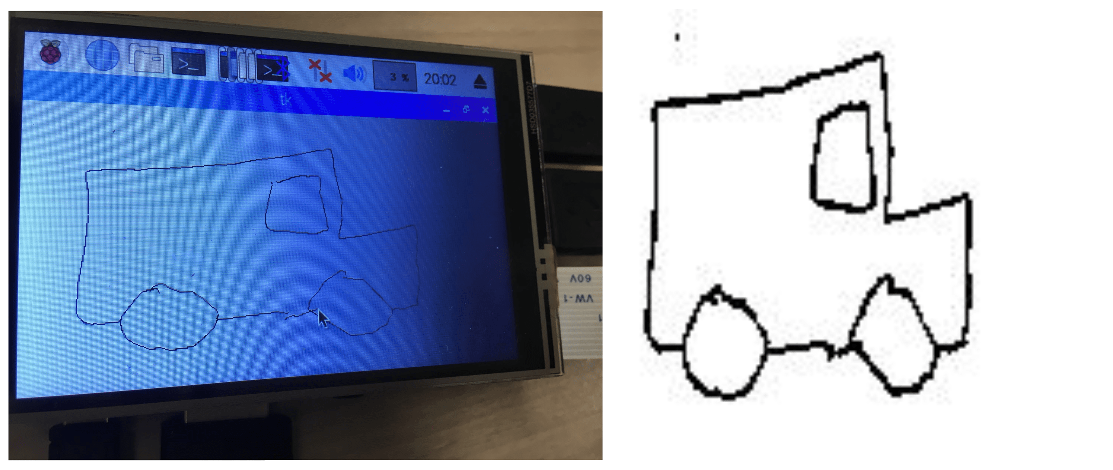 Fig 12 : Un exemple de dessin sur l'écran tactile, et le rendu
