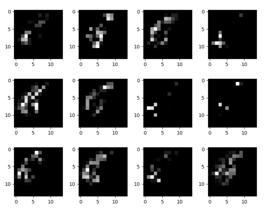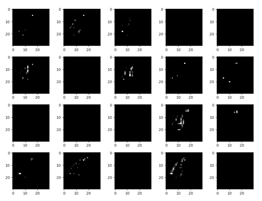 Pour ne pas s’embêter à effectuer les calculs tensoriels à la main, Keras préconise de créer un modèle ayant en sortie chacune des couches puis de calculer la prédiction pour image en entrée.