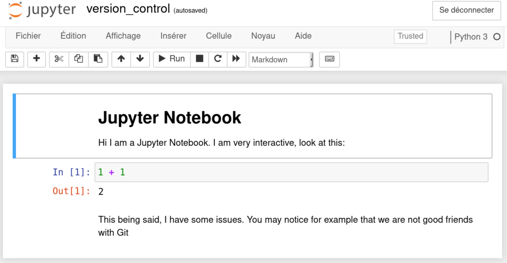 Cependant il est important de noter que beaucoup de code en Machine Learning (et pas que) est écrit sous forme de Notebooks, dont la saveur la plus utilisée est celle de Jupyter.