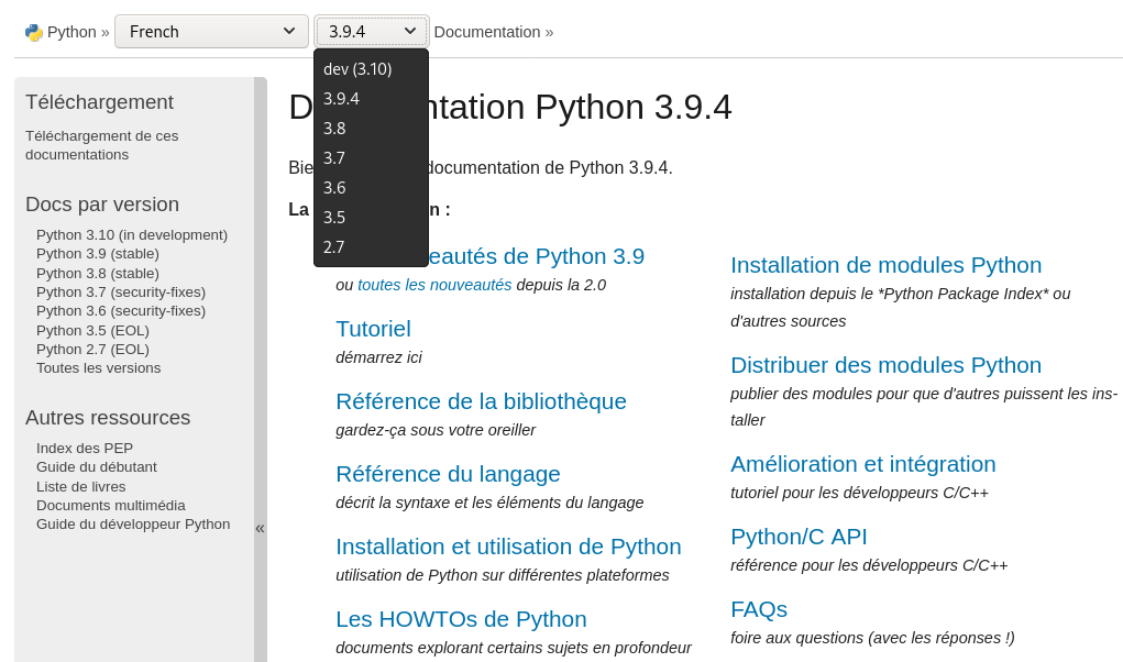 La documentation du langage Python est un bon exemple. En entête de la page, un menu nous permet de facilement naviguer entre les différentes versions de la documentation, liées aux différentes versions du langage.