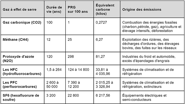 Source : 4e rapport du GIEC de 2007 - valeurs de référence actuelles