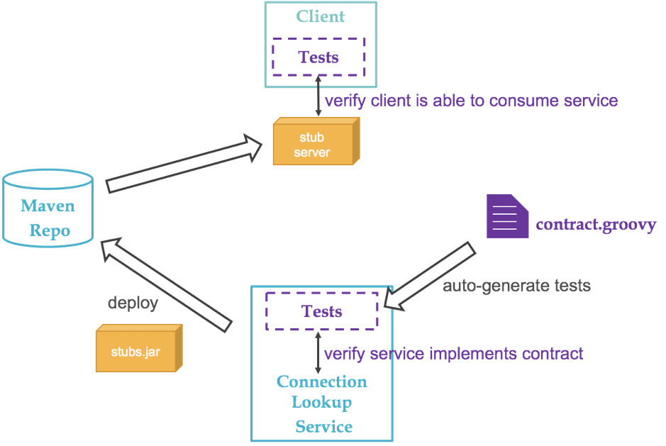 Pour implémenter ce type de tests, je suis resté dans la nébuleuse Spring en utilisant Spring Cloud Contract, mais il existe d’autres frameworks et notamment l’un des plus connus, Pact.