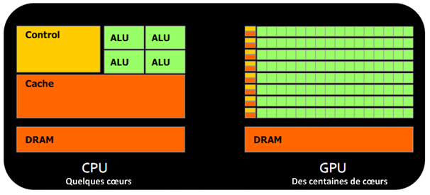 Contrairement au CPU, un GPU n’est pas adapté à un traitement rapide de tâches qui s’exécutent séquentiellement. En revanche, il convient très bien au traitement d’algorithmes parallélisables. Cet aspect est abordé plus en détail dans cet article.