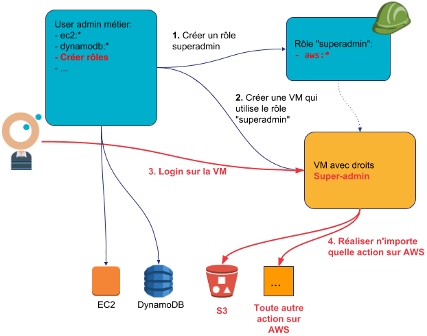 Une classique faille d'escalade de privilèges donc, exploitable sans grand effort par un attaquant. Jusqu'à peu, la règle d'or de l'IAM était donc très contraignante : "seul un administrateur central peut créer rôles et policies". Cette contrainte obligeait à choisir entre deux approches limitées :